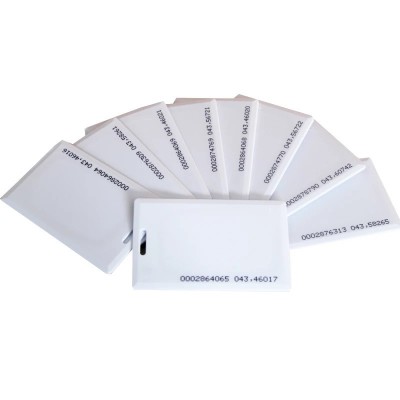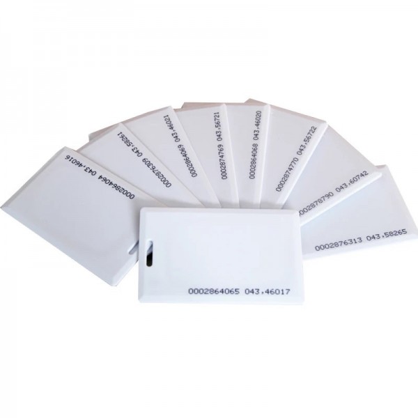 RFID карты стандарта EM-Marin (чип TK4100)– самые простые и дешевые бесконтактные карты для контроля доступа в мире, соответственно самые распространённые. Данный стандарт работает на чистоте 125 кГц. Эти карты имеют стандартный размер  86х54 мм (стандарт ISO7810). Карты имеют объем памяти 64 бит (40 из них составляет уникальный номер) и защиту от электромагнитных полей и статического электричества. Уникальный номер программируется заводом производителем и не является изменяемым пользователем.